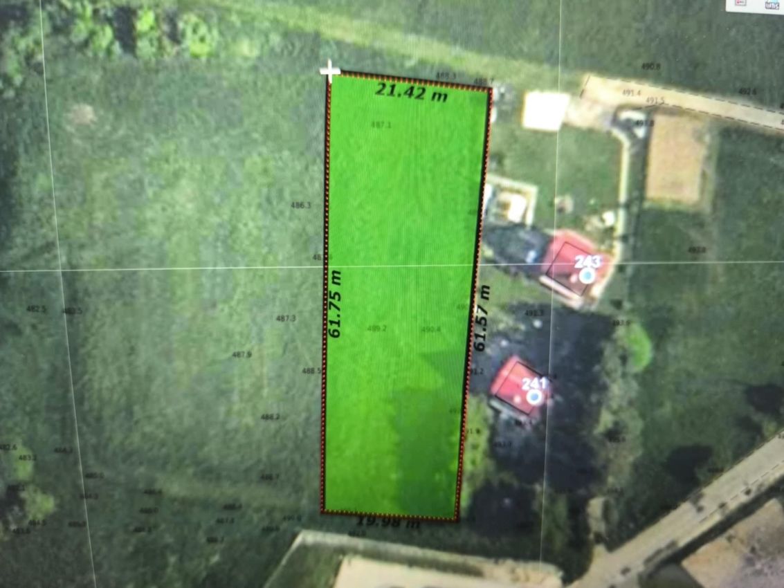 Prezentujemy działkę numer ewidencyjny 259, o powierzchni około 14 arów. To teren budowlany, idealny na zabudowę mieszkalną z usługami, przylegający do drogi gminnej oraz polnej, zapewniający spokój i prywatność. Kształt prostokąta i ustawne wymiary - około 22 m na 62 m - ułatwiają planowanie i realizację Twojego wymarzonego domu. Działka jest ogrodzona od strony sąsiada siatką, co zapewnia bezpieczeństwo i wyznacza granice posesji.