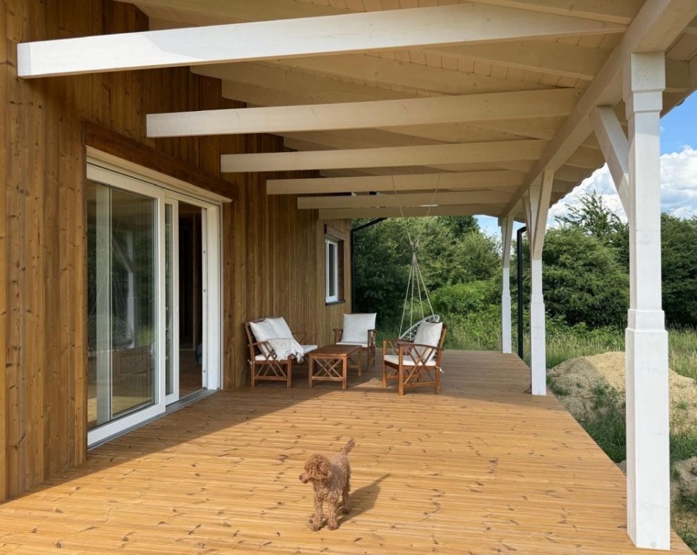 Natura to najlepszy architekt - dlatego w domu wykorzystano płyty Defentex z rdzeniem gipsowym i włóknem szklanym, wzbogacone o środki hydrofobowe i grzybobójcze, co zapewnia zdrowie, komfort i długotrwałą jakość użytkowania. Estetyka i ekologia idą tutaj w parze, a ocieplenie dachu systemem Steico dodatkowo podkreśla troskę o środowisko i komfort mieszkańców.