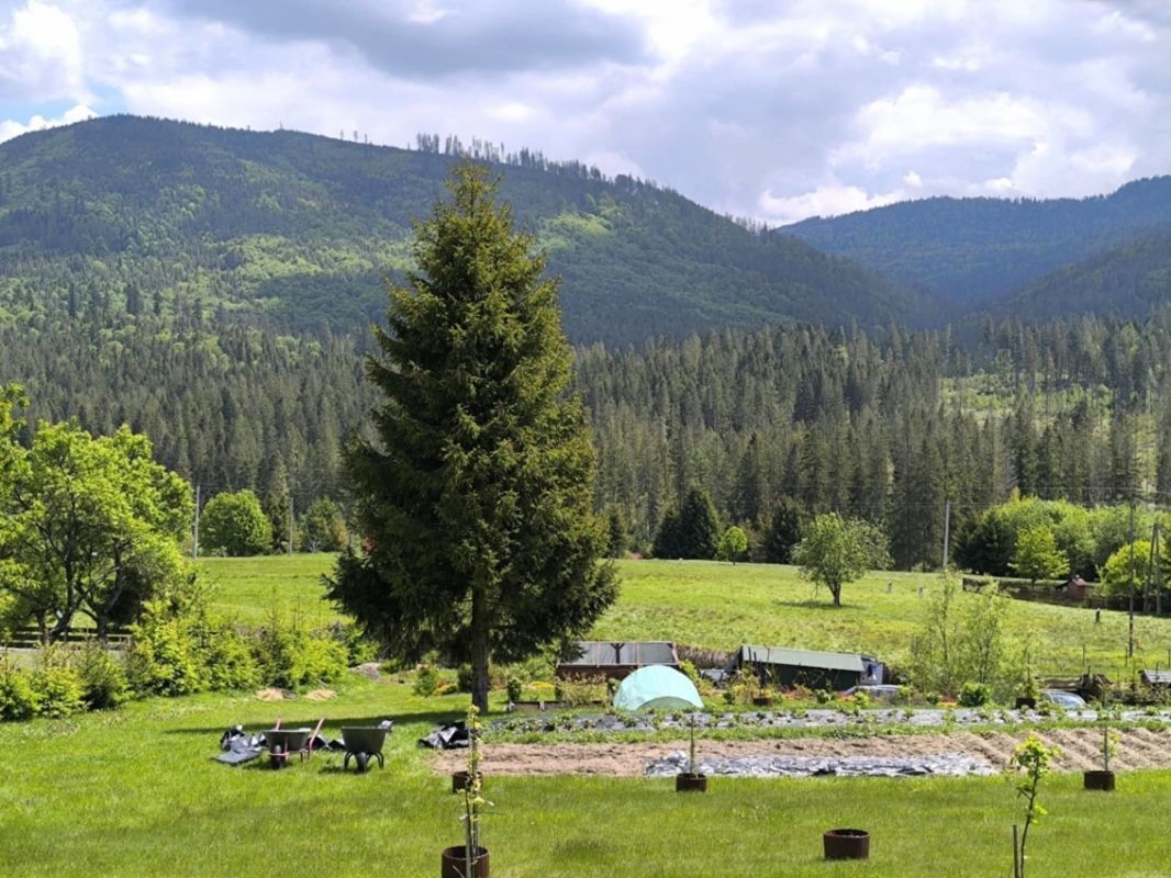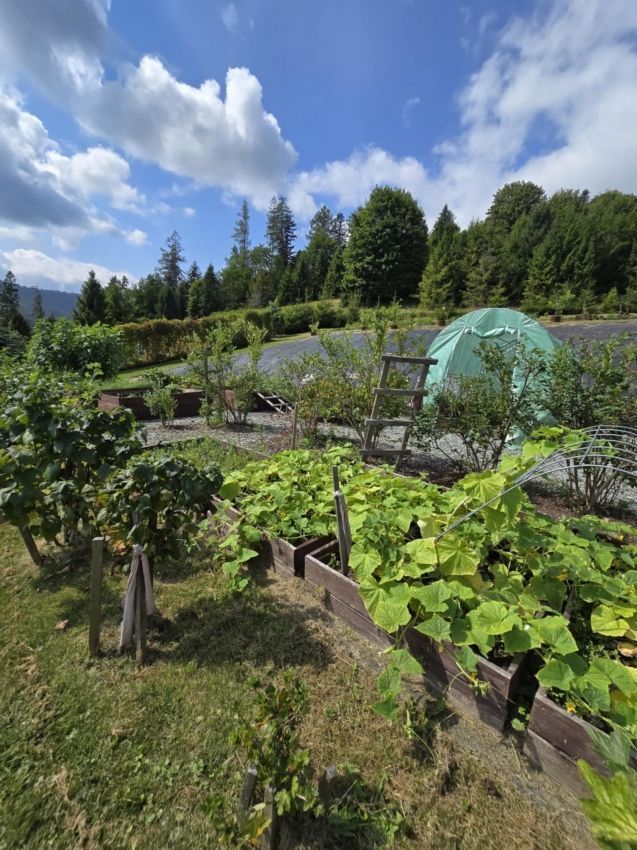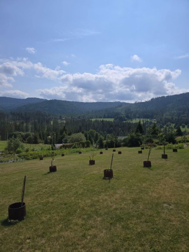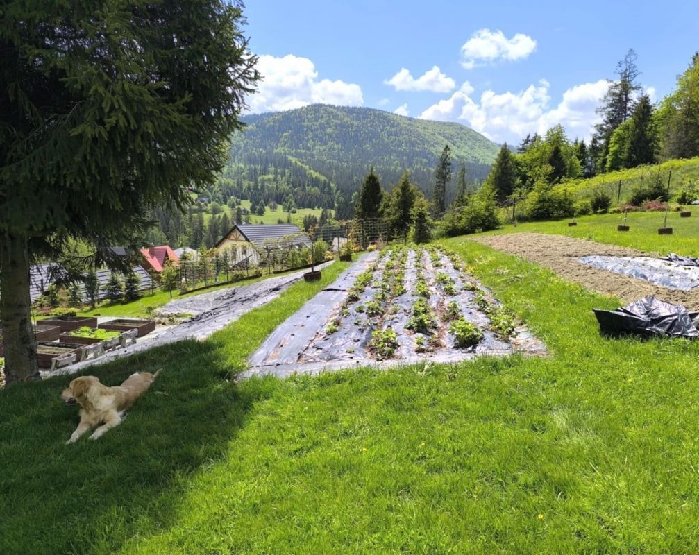 Działka jest dobrze nasłoneczniona i widokowa, z licznymi nasadzeniami, krzewami, kwiatami oraz własnymi uprawami, szklaniami i szklarniami, umożliwiającymi samowystarczalność w zakresie warzyw, owoców i ziół. W trakcie jest również rozpoczęta budowa drewnianego domu.