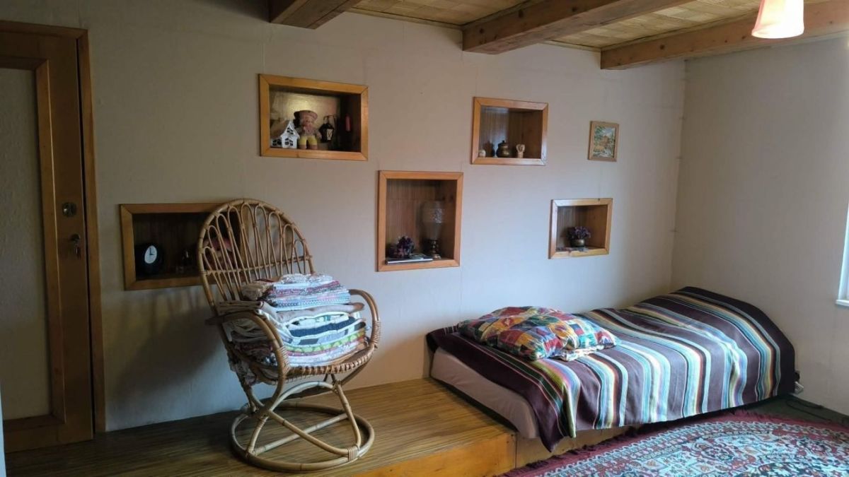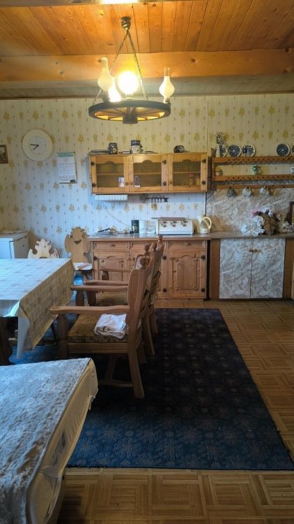 - Konstrukcja: Bal drewniany, fundament z kamienia, blacha trapezowa, okna drewniane skrzynkowe,