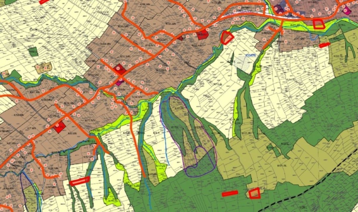 Na fragmentach map z Miejscowego Planu Zagospodarowania Przestrzennego kolor żółty to tereny rolne, zielony - leśne.