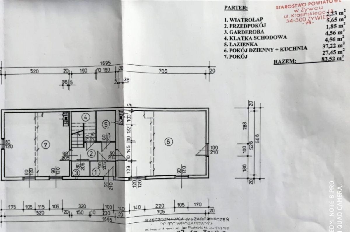 Ogólna powierzchnia użytkowa na parterze to 83,52 m2